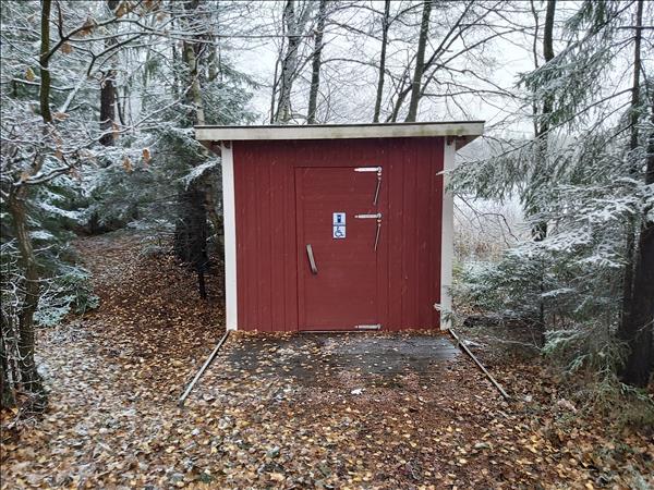 Eldstad vid naturistbadet i Fjällnora. Tillgänglighetsanpassat utedass finns i närheten liksom strand med bryggor.