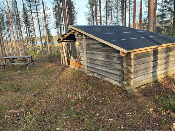 Bänkbord och vindskydd med golv i bra skick vid södra änden av Fabodsjön. Viss utsikt över den till stora delar igenvuxnna sjön. Bra eldstad av metall med galler. Inte jättelång avstickare från Gästrikleden. I närheten finns en liten bäck där man kan ta vatten.