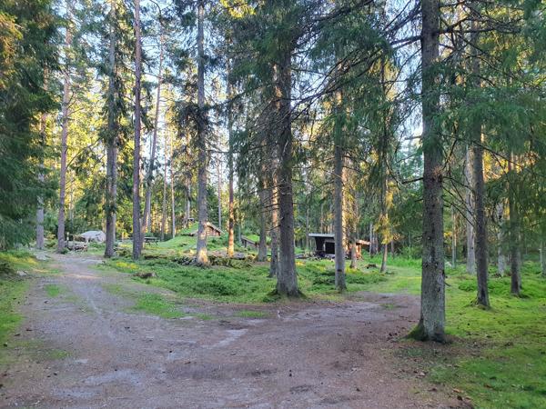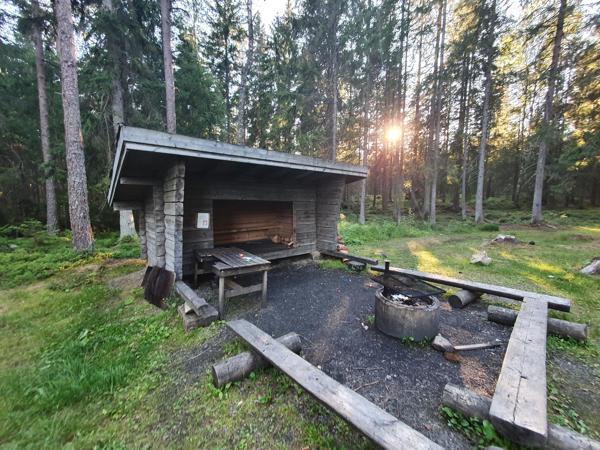 Vindskydd för 4-5 personer. Platsen har ett större utrymme för många tält. Finns även vatten och toalet, och ett par extra byggnader, samt en vatten källa.