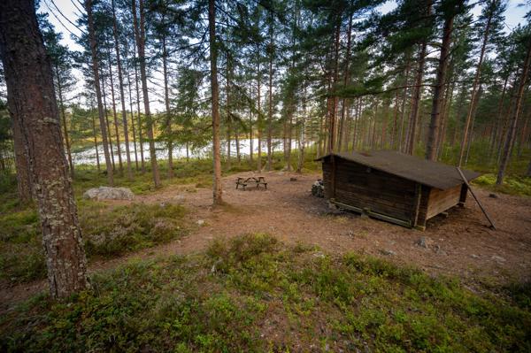 Braa beläget vindskydd med stor brygga mot sjön Myr gryten.
