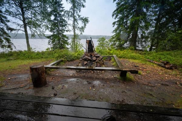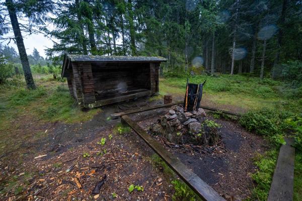 Ett vindskydd som det är ett äventyr att nå. Finns en led 10 sjöars led som går förbi, men den har sätt bättre dagar.