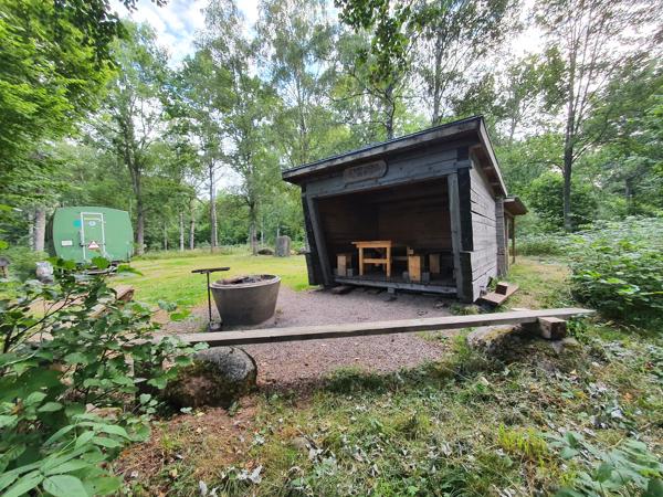Vindskydd med plats för att sova om man lyckas flytta ut möblerna. Används annars för fiske av olika karaktär.