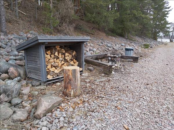 Eldstad med sittbänkar runt. Vedöfrråd och soptunna. Ligger vid strandpromenaden.