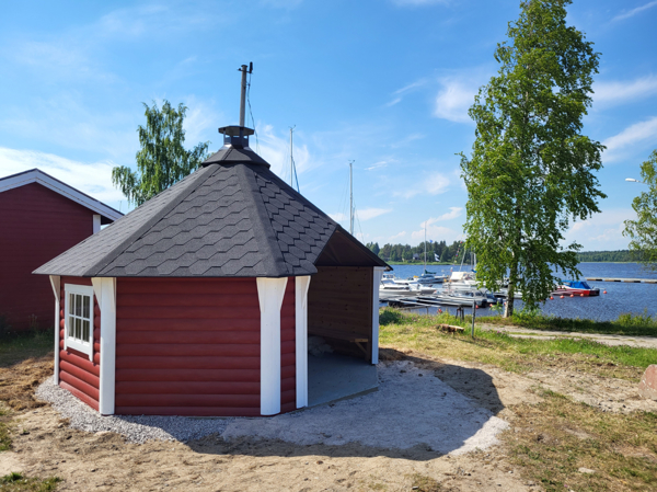 Nyuppförd grillstuga vid småbåtshamnen i Töre. Ligger även nära ubåtsmuseumet där man kan se miniubåten Spiggen.